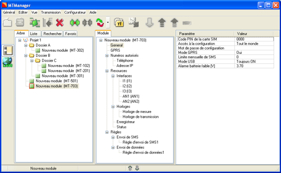 Avec les modules de télémesure et les modules de suivi en géolocalisation, nous livrons l'utilitaire intuitif MT Manager (MTM) pour faciliter la configuration de tous les paramètres, les modes de fonctionnement et les fonctions de chaque module et pour la création du programme de contrôle logique à exécuter par le module.